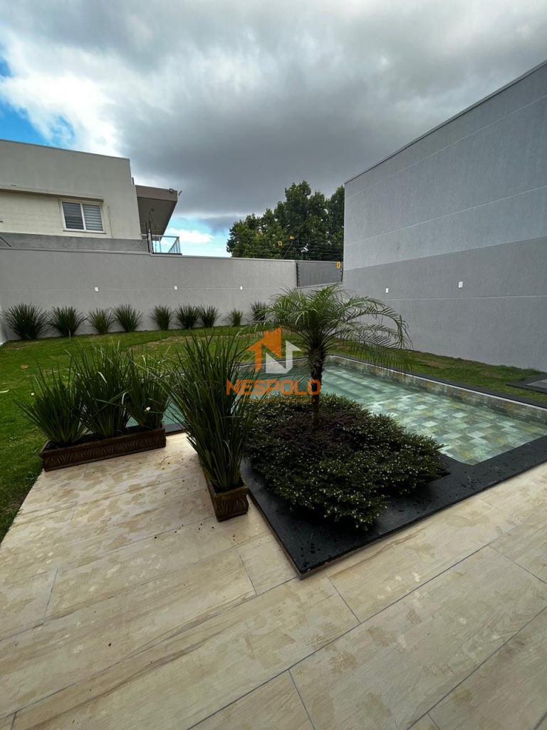 Casa com estilo contemporâneo linhas retas e detalhes em brises para trazer sofisticação, privacidade e iluminação natural. Living integrado com pé direito alto, trazendo mais amplitude ao espaço, com grandes aberturas que se integram a área externa com deck de madeira e uma ampla piscina para proporcionar momentos de descanso e lazer.